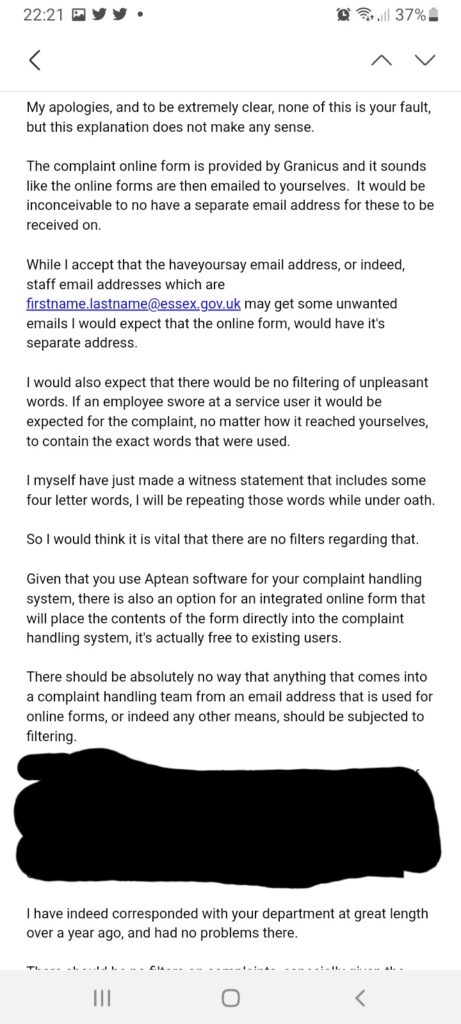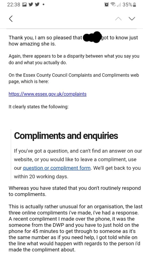 The complaints and compliance department at Essex County Council is a shambles.